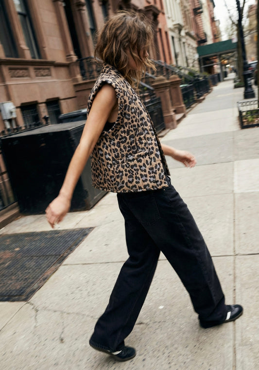 VESTE SANS MANCHES IMPRIMÉE LÉOPARD