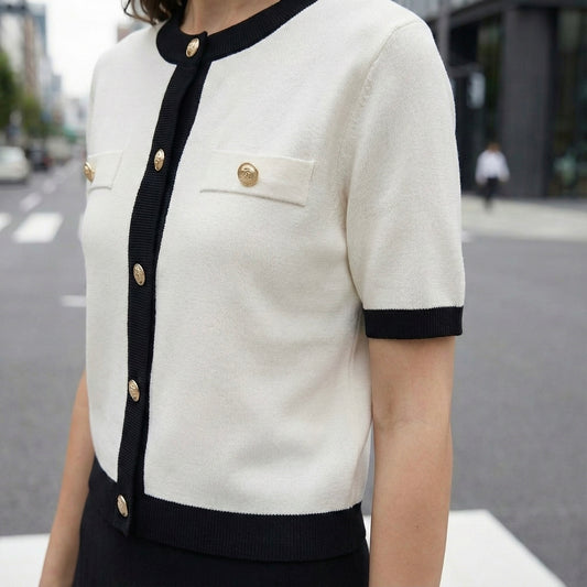 CARDIGAN CONTRASTÉ À BOUTONS DORÉS