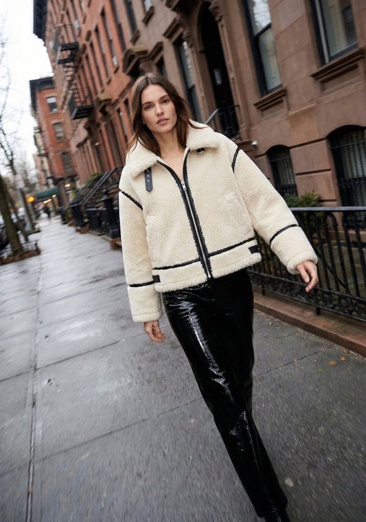 VESTE EFFET LAINE AVEC DÉTAILS CONTRASTÉS