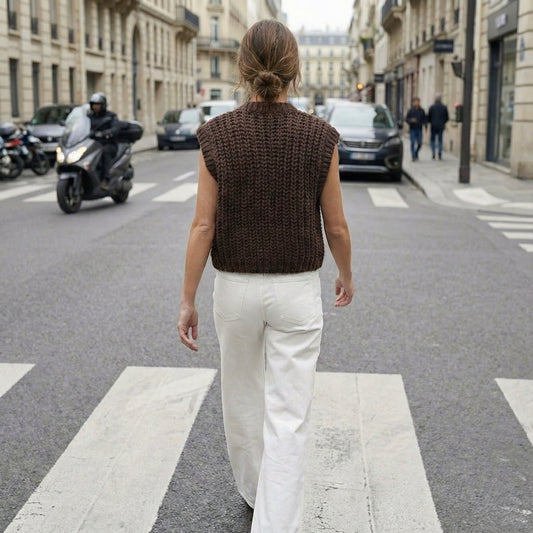 GILET SANS MANCHES EN TWEED À CEINTURE