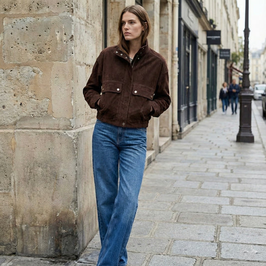 BLOUSON EN SUÉDINE À POCHES PRESSIONNÉES