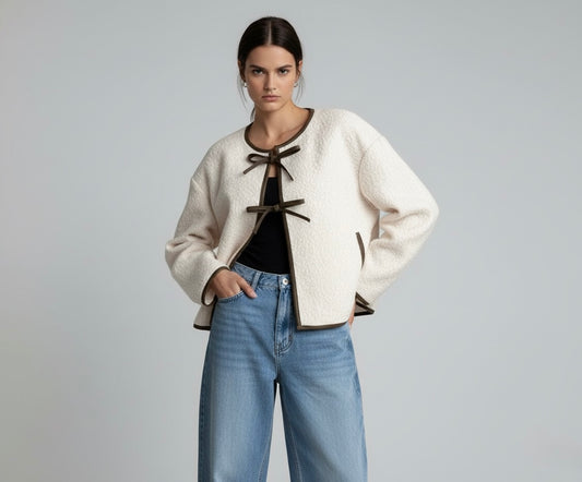 VESTE EFFET LAINE AVEC LIENS À NOUER