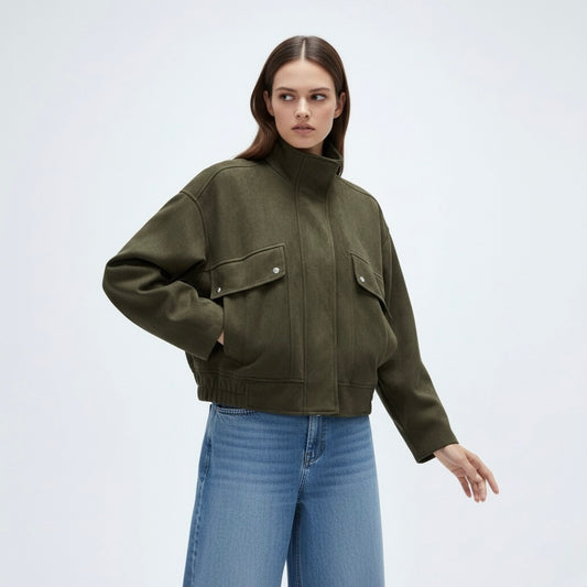 BLOUSON CONTRASTÉ À COL CLASSIQUE