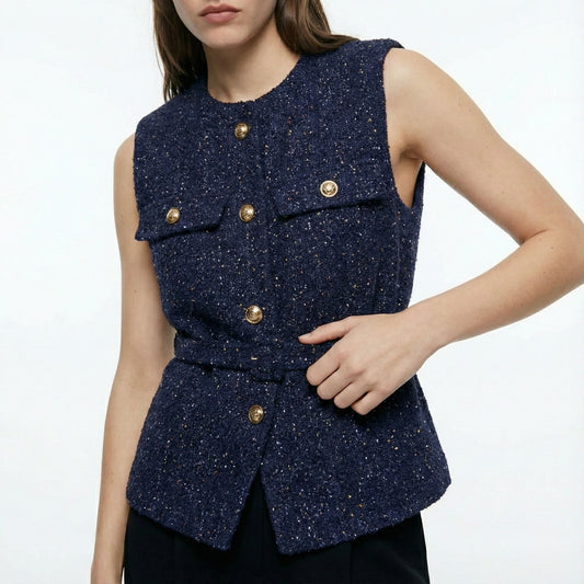 GILET STRUCTURÉ EN TWEED À CEINTURE