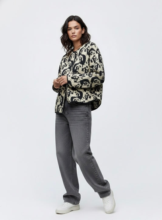 VESTE COURTE MOTIF LÉOPARD STRUCTURÉE