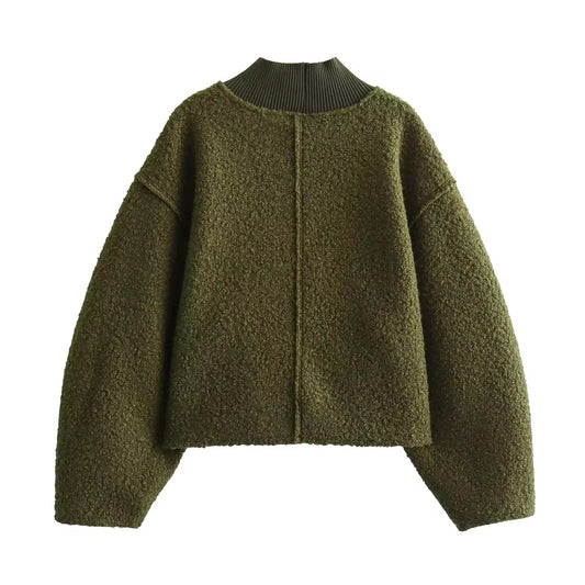 VESTE COURTE EN BOUCLETTE AVEC BOUTONS DORÉS