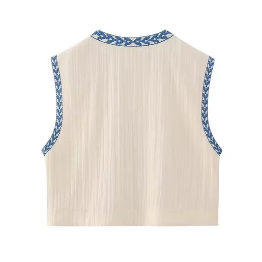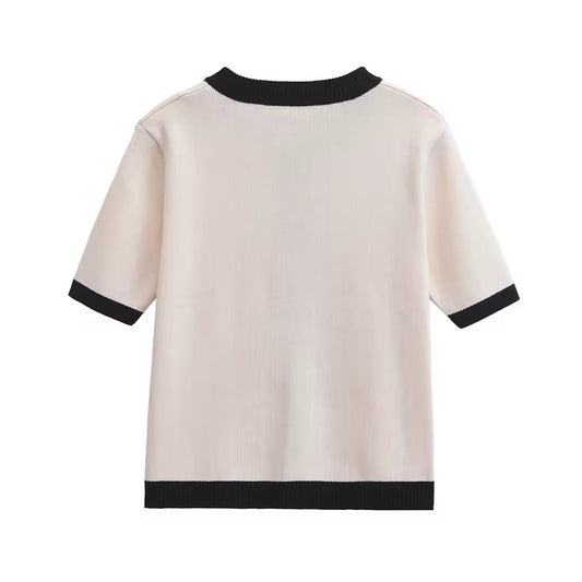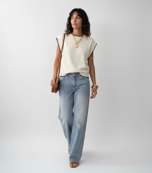 TOP TEXTURÉ À BORDS CONTRASTÉS