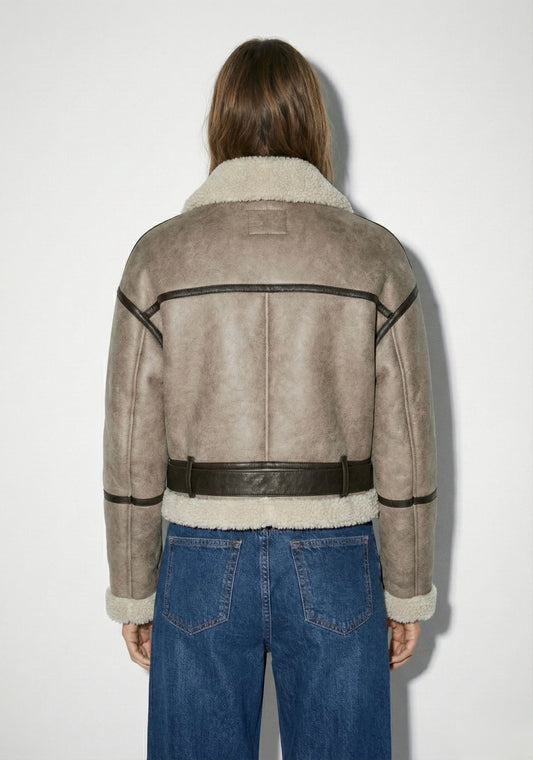 BLOUSON DOUBLÉ À COL EN EFFET FOURRURE
