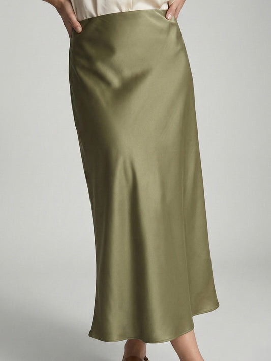 JUPE MIDI SATINÉE À FINITION DENTELLE