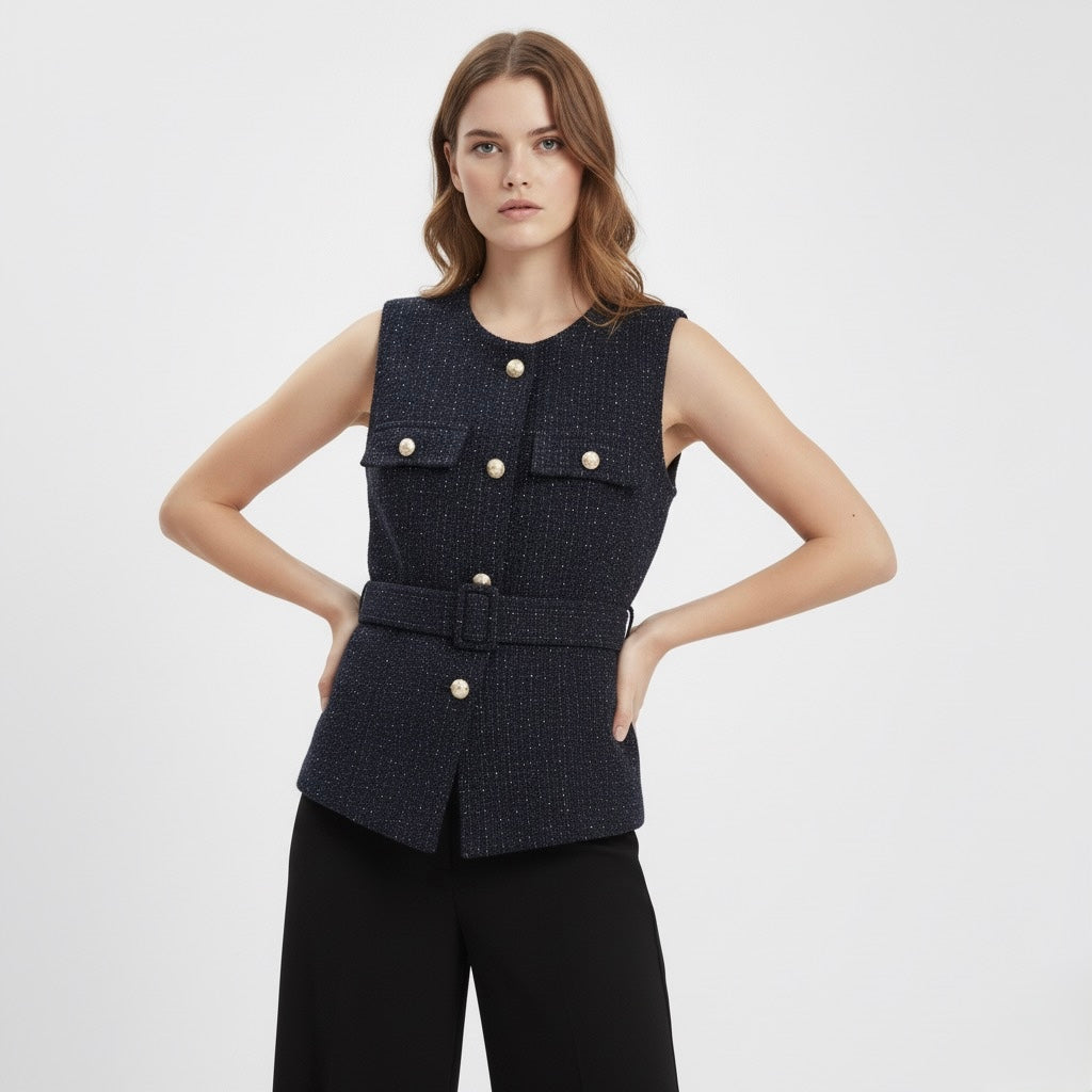 GILET SANS MANCHES EN TWEED À CEINTURE