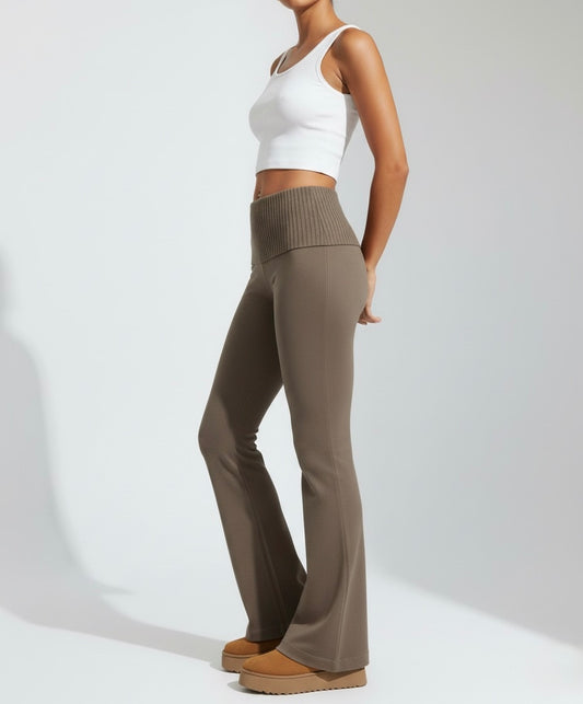 PANTALON MAILLÉ ÉVASÉ À TAILLE CÔTELÉE