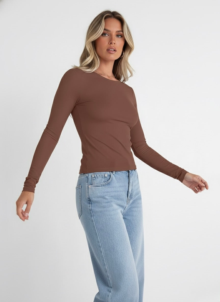 Top à coupe droite et col rond, confectionné dans une matière douce et élastique. Finition sobre et ajustée.
