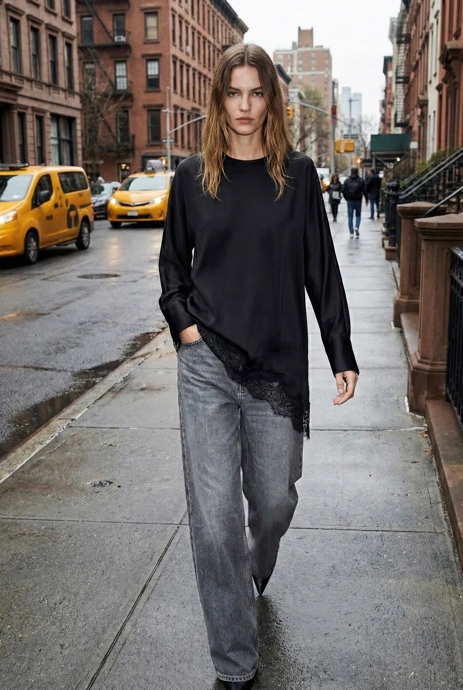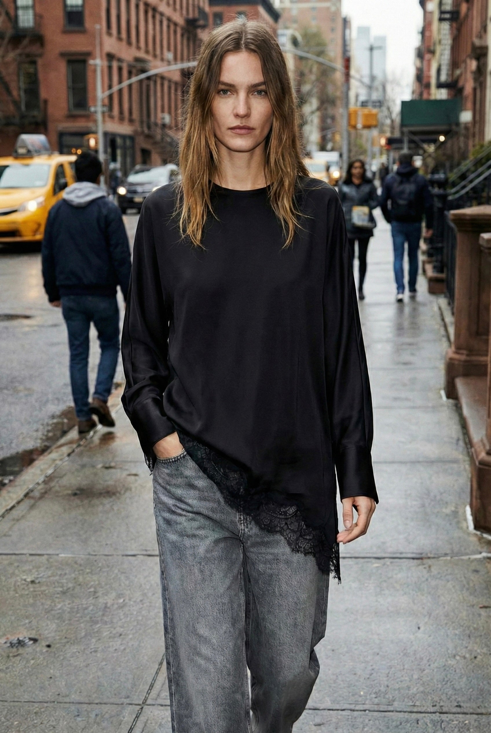 BLOUSE LONGUE À FINITION DENTELLE