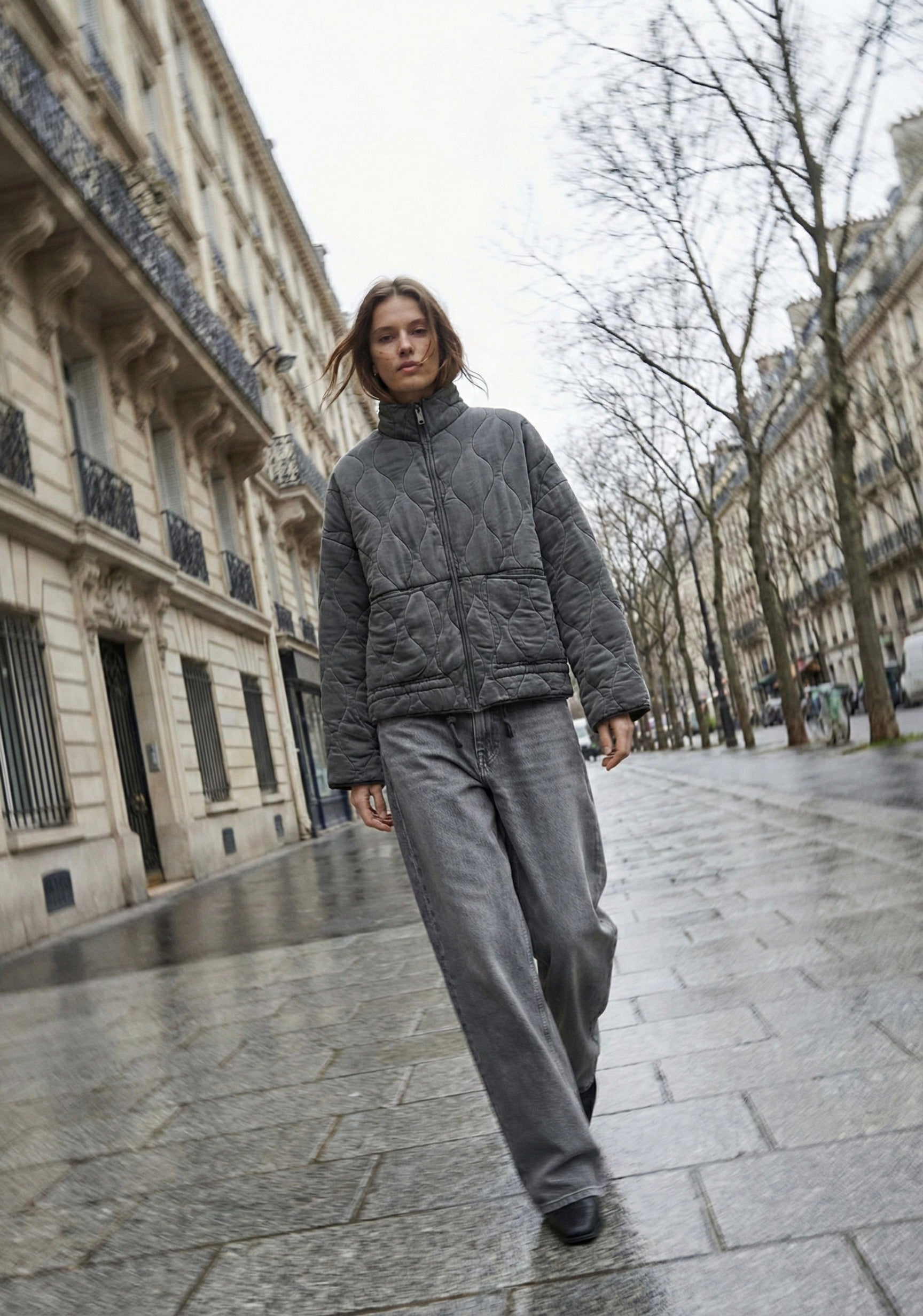 Giacca con collo lungo e maniche lunghe. Tasche anteriori con profili. Chiusura frontale con cerniera.