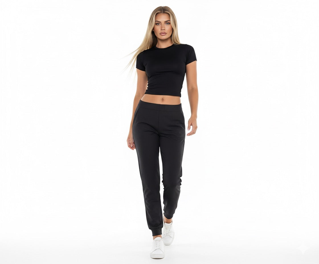 T-shirt à coupe près du corps, col rond, manches courtes, tissu extensible au toucher doux. Finition lisse et minimaliste.