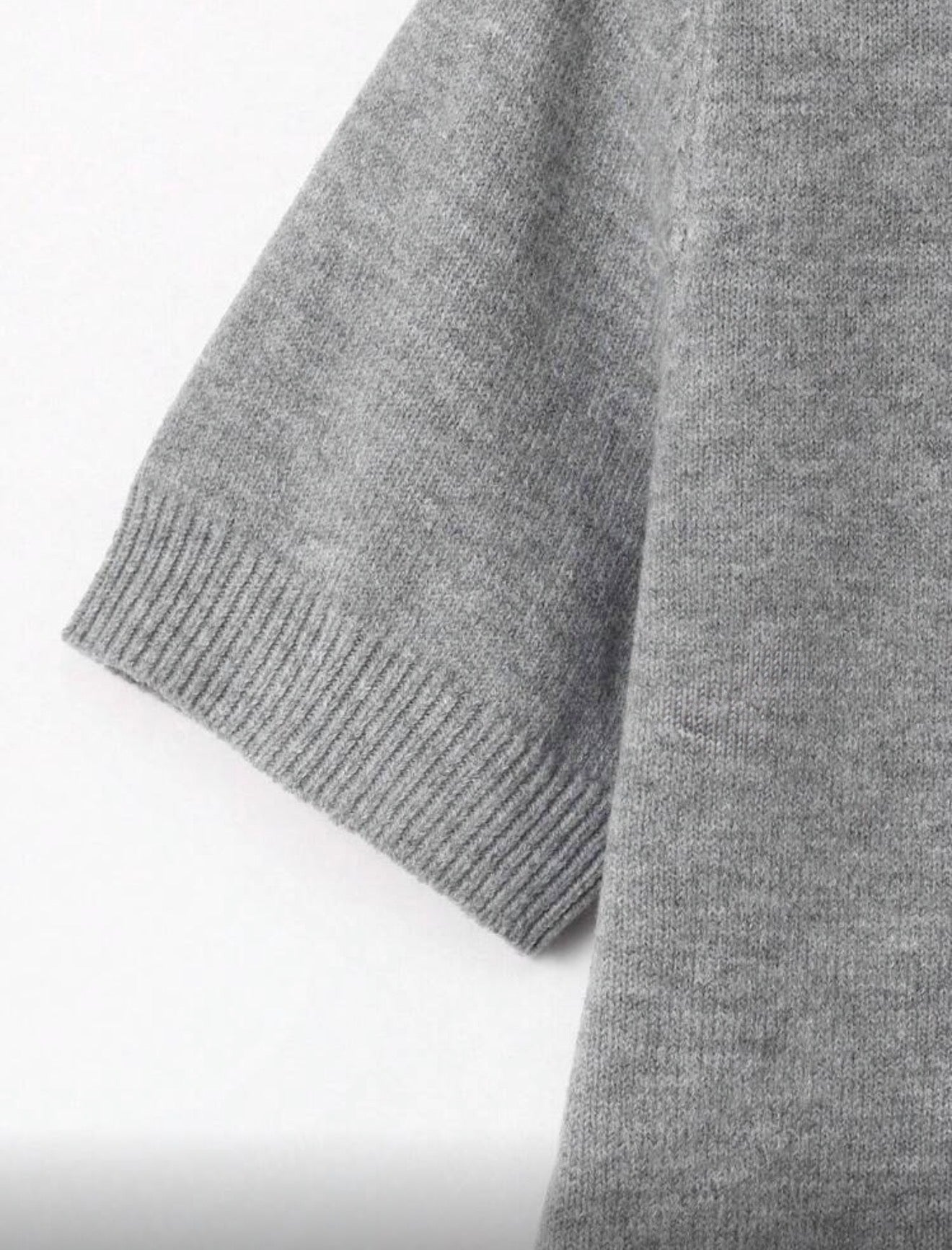 Top à coupe droite confectionné en maille fine à texture douce. Encolure ronde côtelée, finitions côtelées aux manches et à la base. Style minimaliste et intemporel, idéal pour superposition ou port seul.