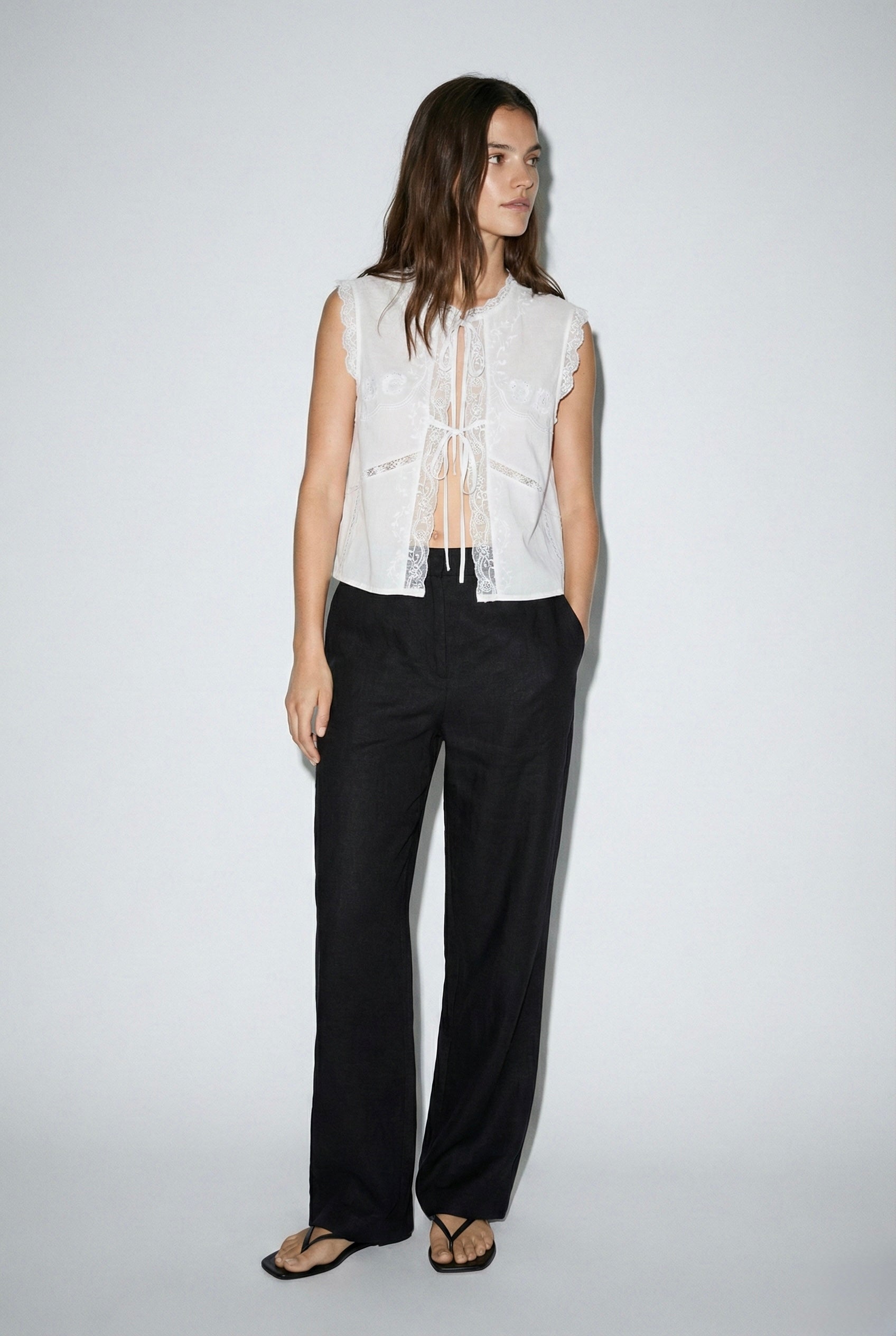 TOP SANS MANCHES À LIENS ET DENTELLE