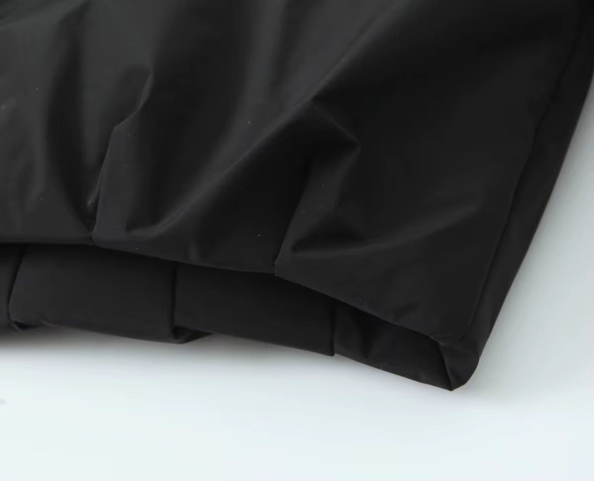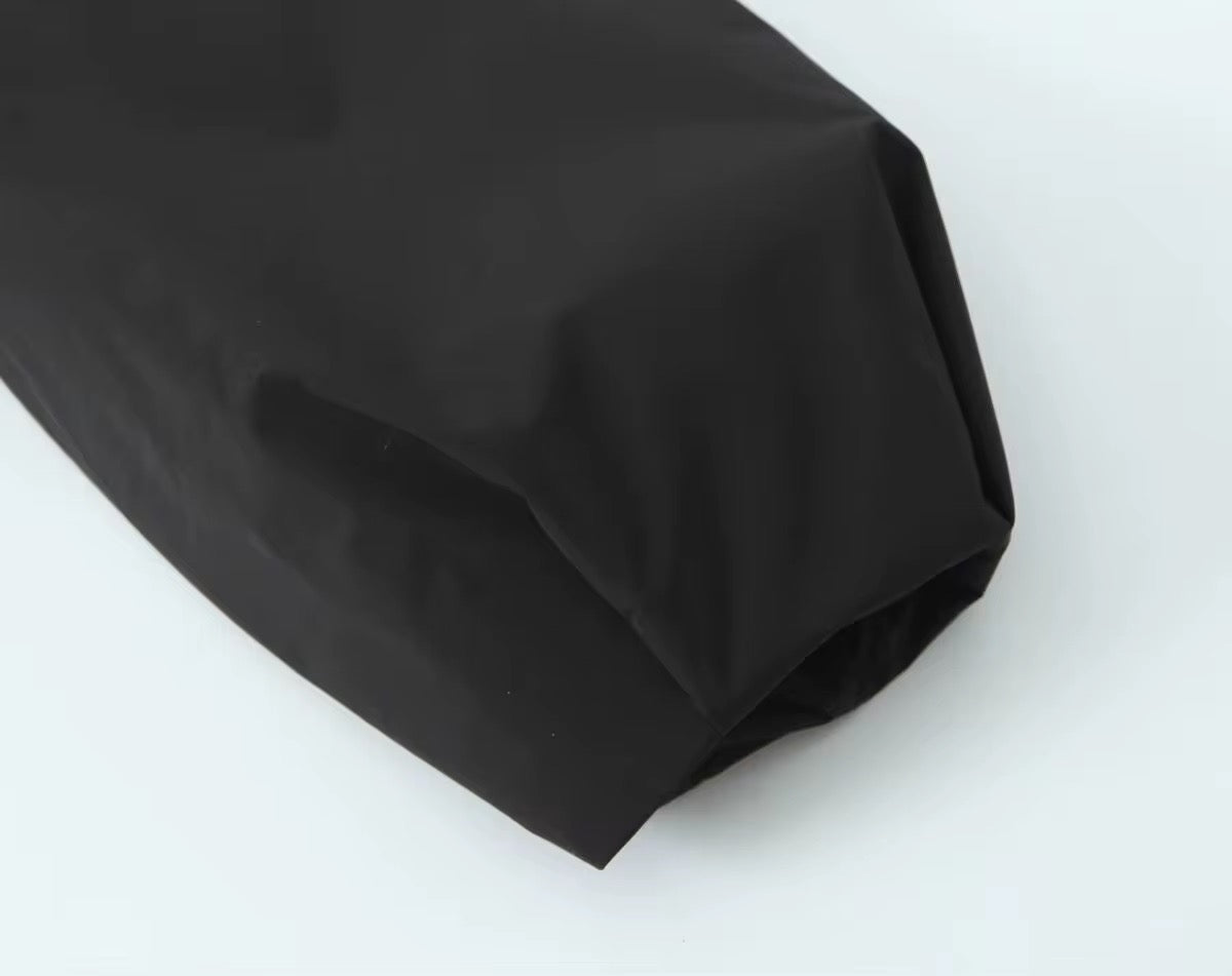 Giacca corta e ampia in tessuto leggero. Modello con colletto a camicia, maniche lunghe a sbuffo e cerniera argentata sul davanti. Base stretta con elastico. Completamente foderato.