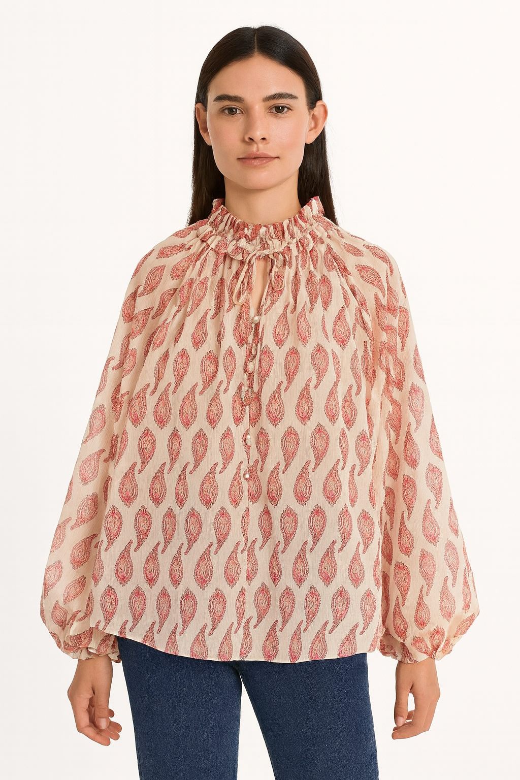 BLOUSE IMPRIMÉE COL FRONCÉ