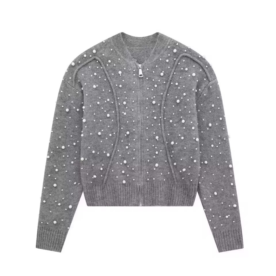 CARDIGAN PERLÉ À FERMETURE ZIPPÉE