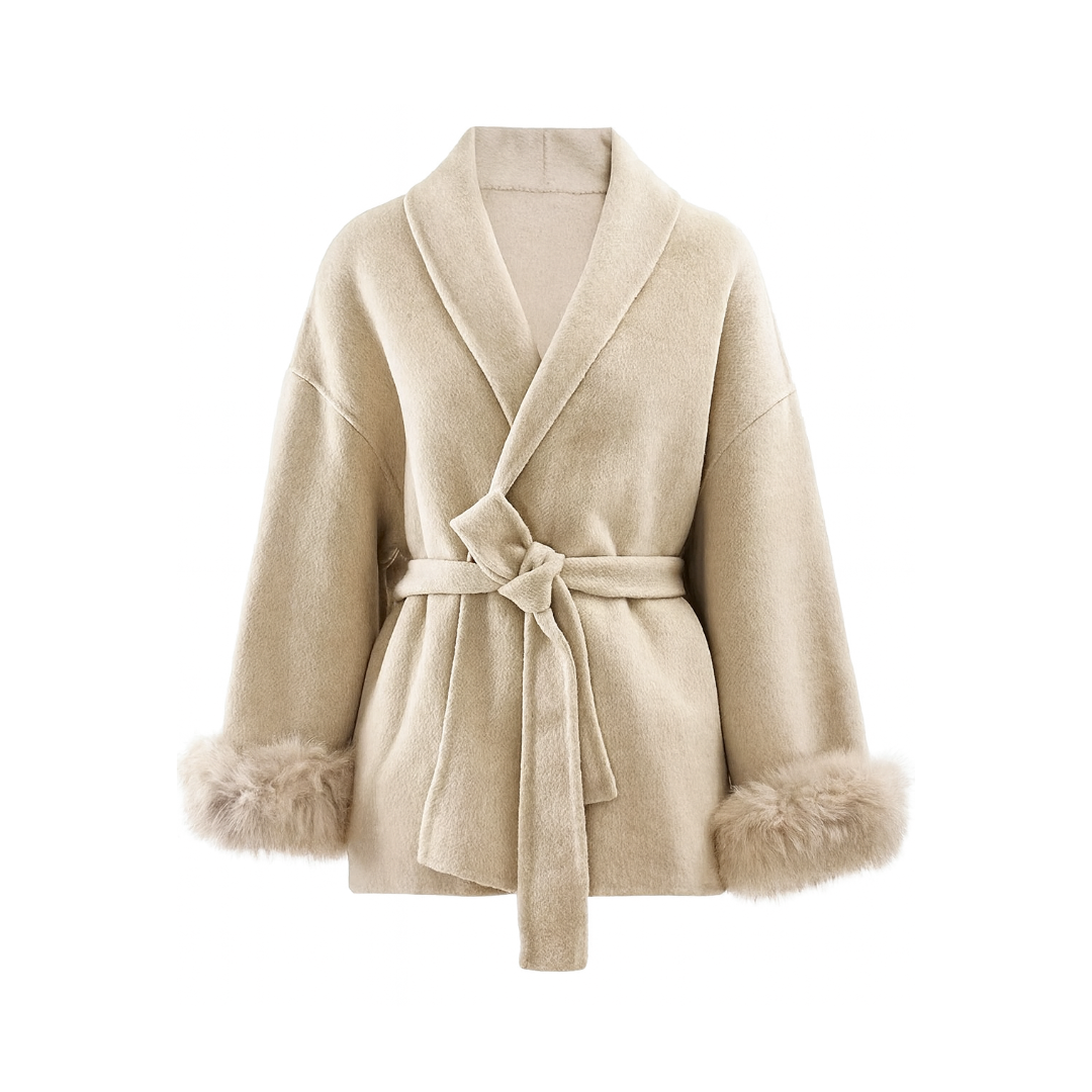 MANTEAU COURT CEINTURÉ À MANCHES FOURRÉES