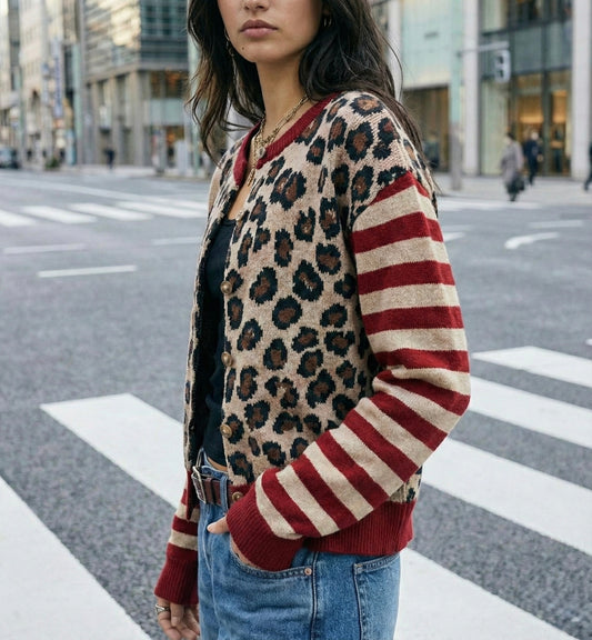 Offre de Noël - Livraison 48hCARDIGAN À IMPRIMÉ LÉOPARD ET RAYURES