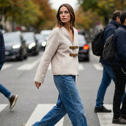 VESTE EFFET LAINE AVEC DÉTAILS CONTRASTÉS
